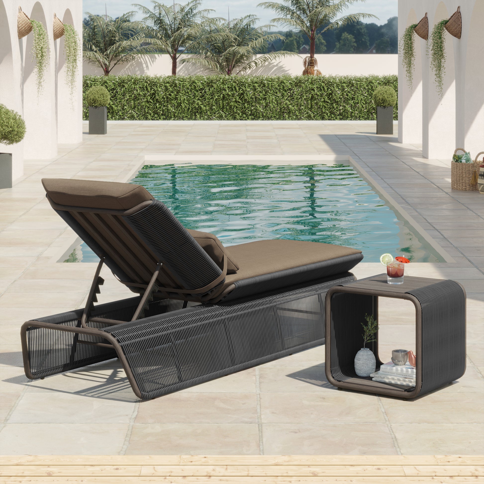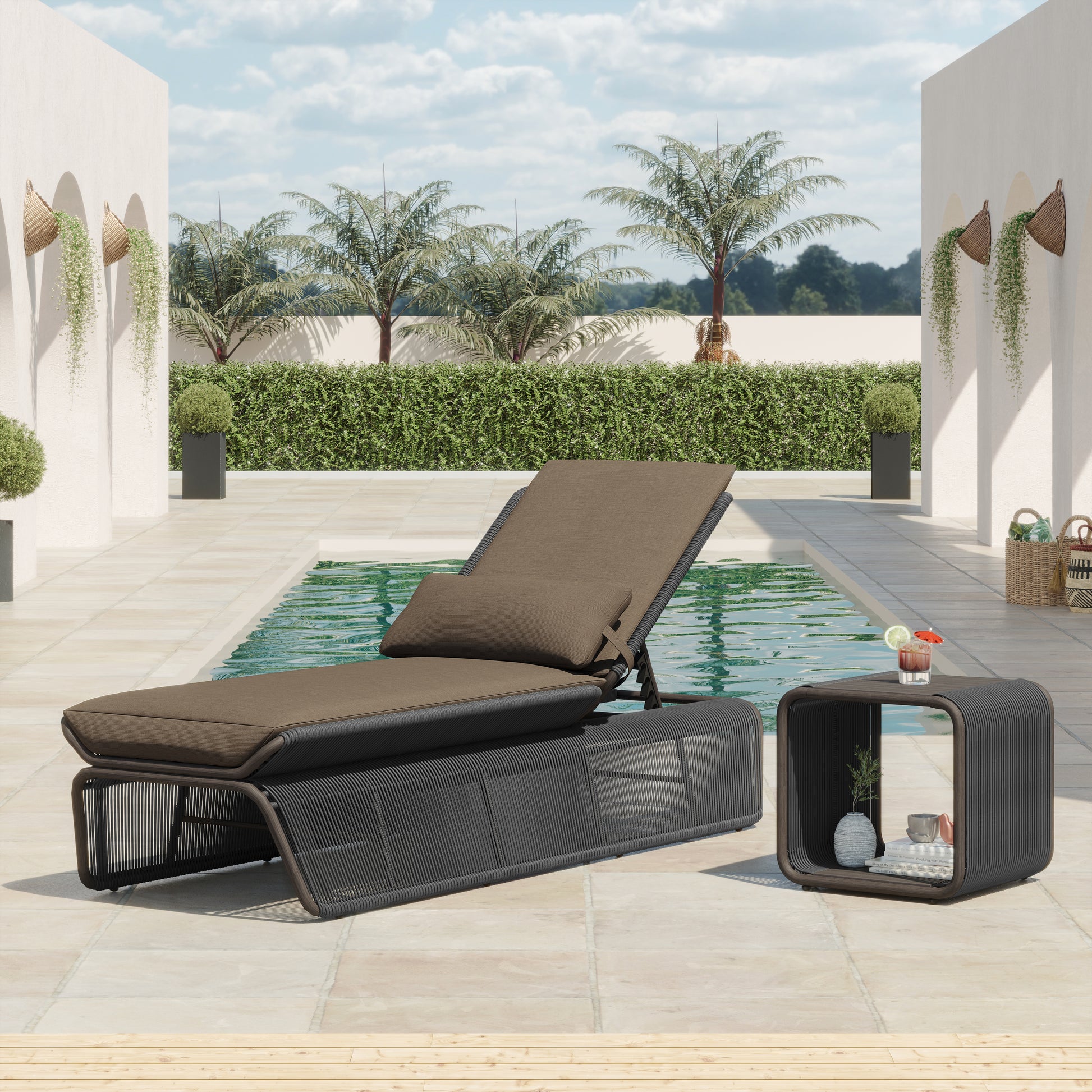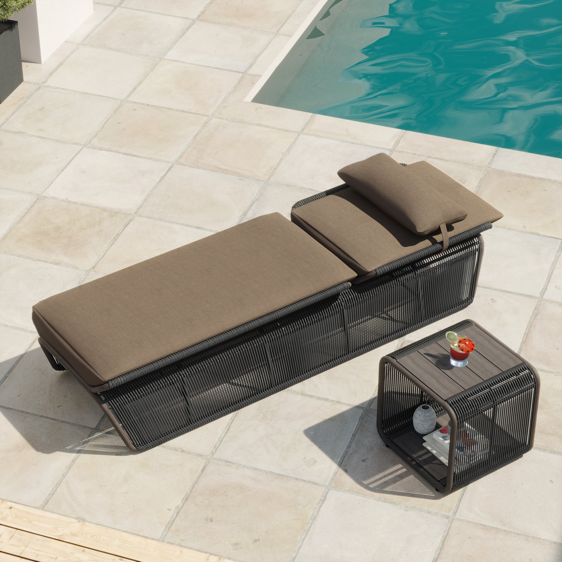 Discover the Maranta set, the ultimate in comfort and elegance for your outdoor space. Imagine relaxing on the luxurious lounge chair, lulled by the gentle whisper of the wind, while the coffee table offers a convenient place to rest your favorite beverage. Created with attention to detail and exceptional quality, the Maranta set adds a touch of sophistication to your garden or patio.