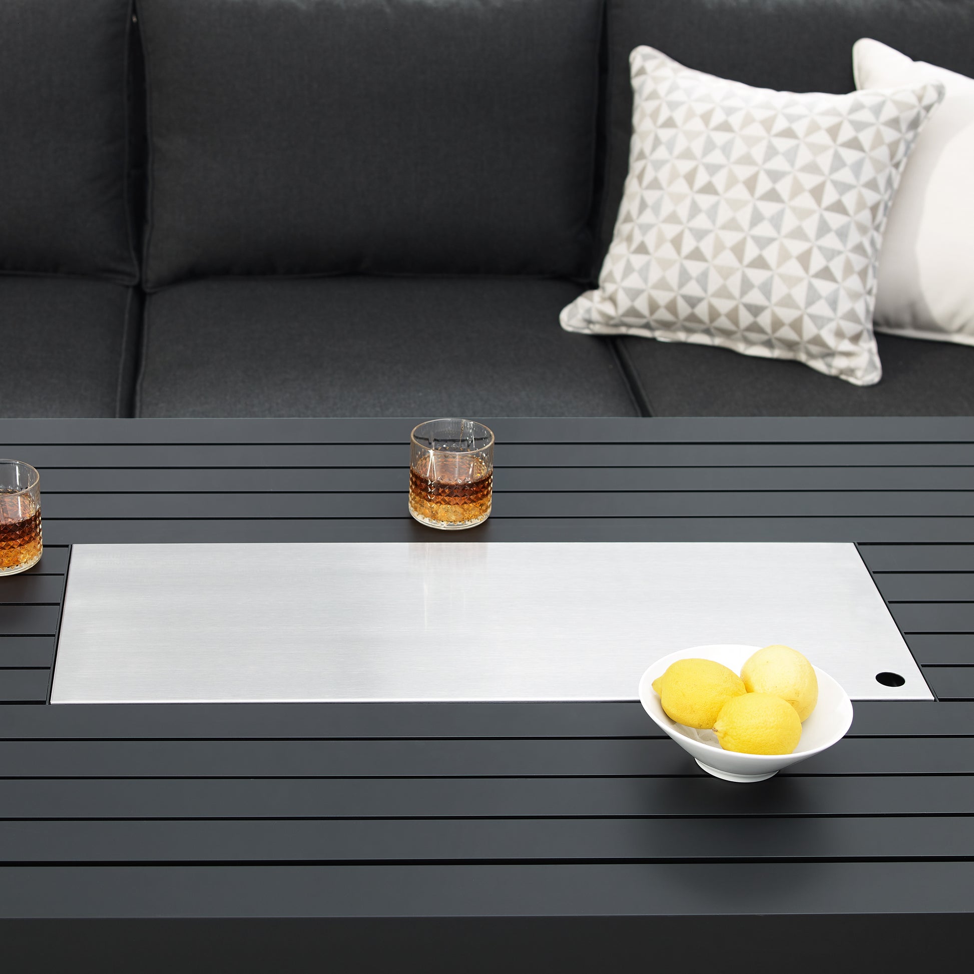 - 6.5-inch Sunbrella® cushions in color: Spectrum Carbon