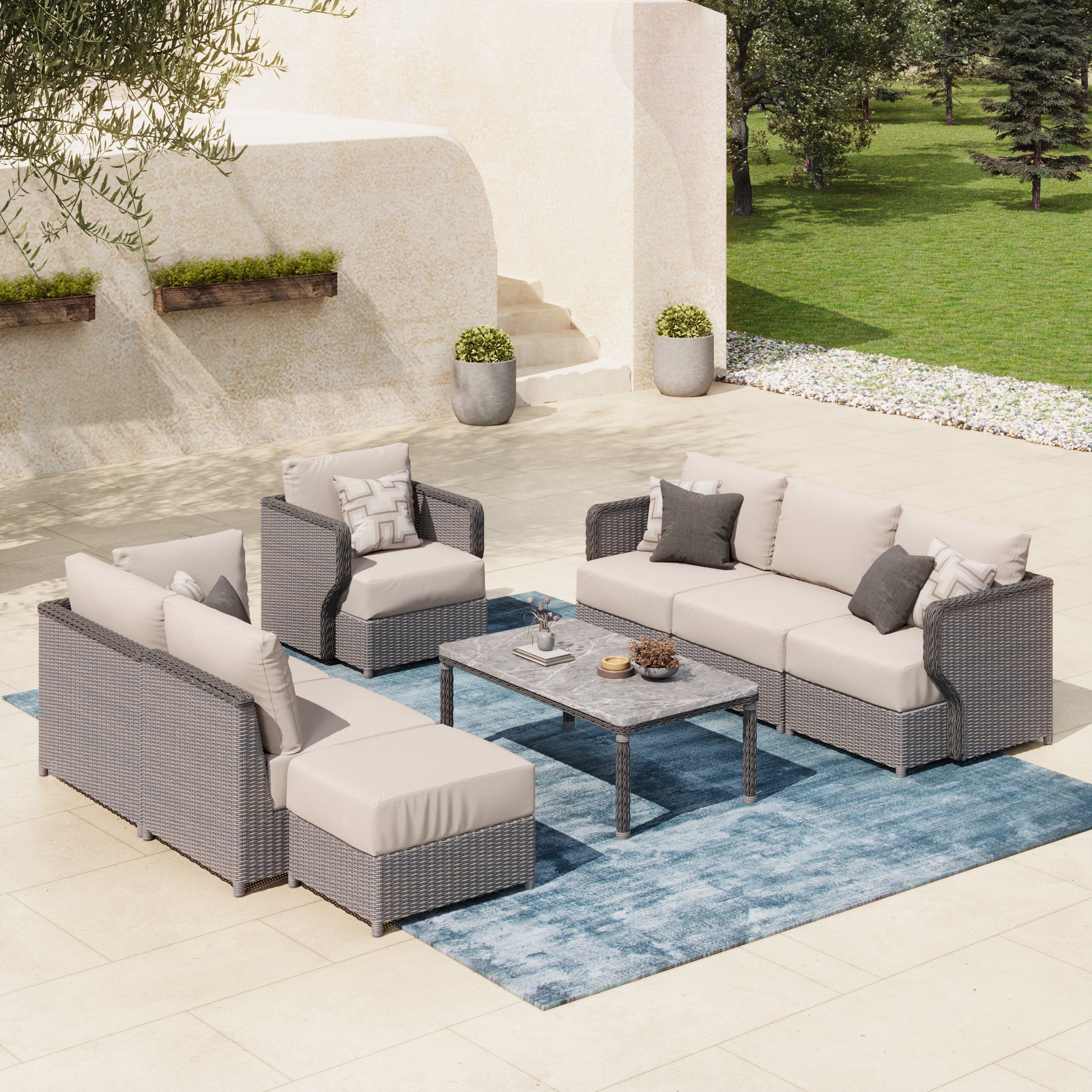Discover the timeless elegance of our Richmond 8-piece modular garden furniture set , designed for those who appreciate premium quality and versatility. This beautiful set can be arranged to offer you a spacious sofa, comfortable loveseats and more, not to mention the coffee table and club chair. You will find this Richmond set perfect for transforming your outdoor space into a luxurious relaxation area.