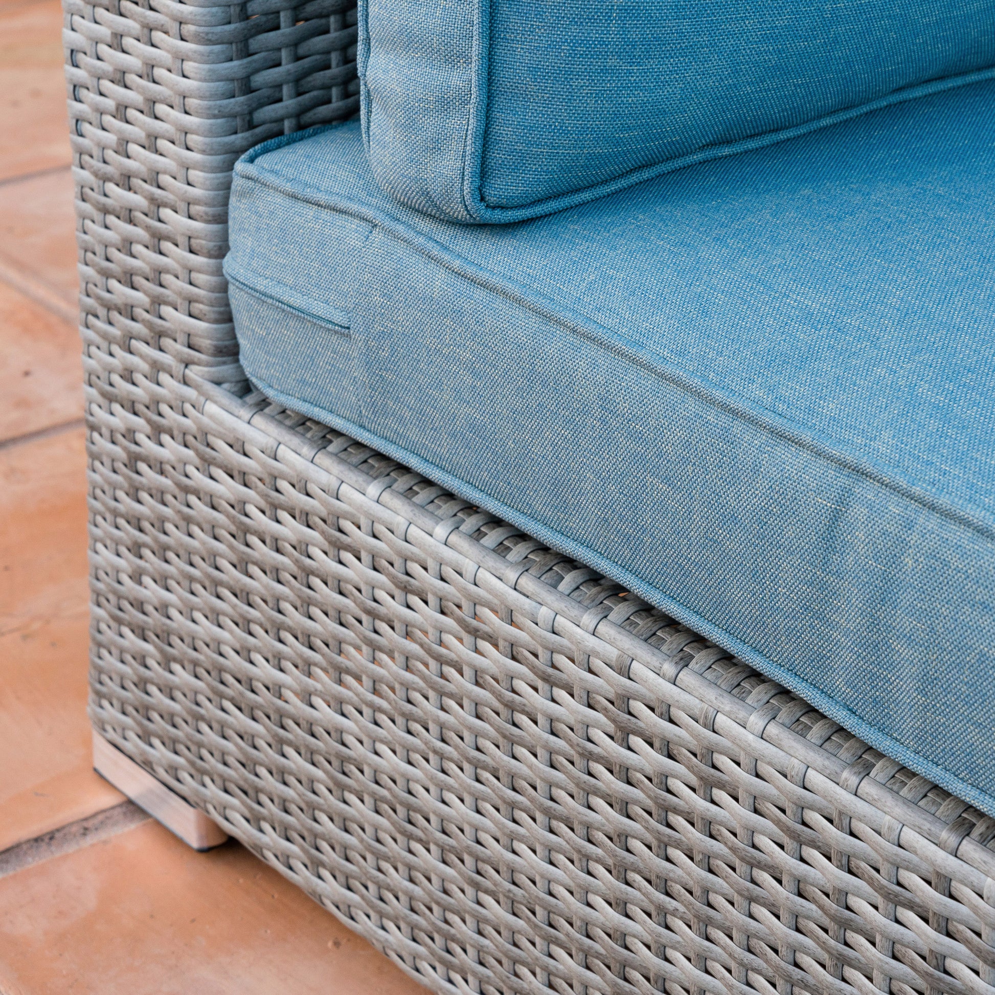 Avec ses couleurs uniques, l'ensemble modulaire Kavala 6-pièces plaira aux plus exigeants! Avec ses multiples configurations possibles, l'ensemble Kavala comblera vos besoins changeants. Les pièces sont dotées d'un cadre d'aluminium épais et robuste, soudé à la main et revêtu d'osier synthétique en résine tressée à la main, résistant aux intempéries. Les coussins sont confectionnés de tissu de polyester résistant, à l'épreuve des intempéries et rembourrés d'une poly-fibre écologique. Avec ses innombrables possibilités, l'ensemble modulaire Kavala 6-pièces de Sirio ajoutera un style élégant et un aspect pratique à votre espace extérieur et ce, pour de nombreuses années!