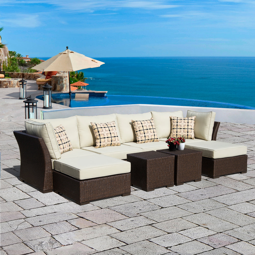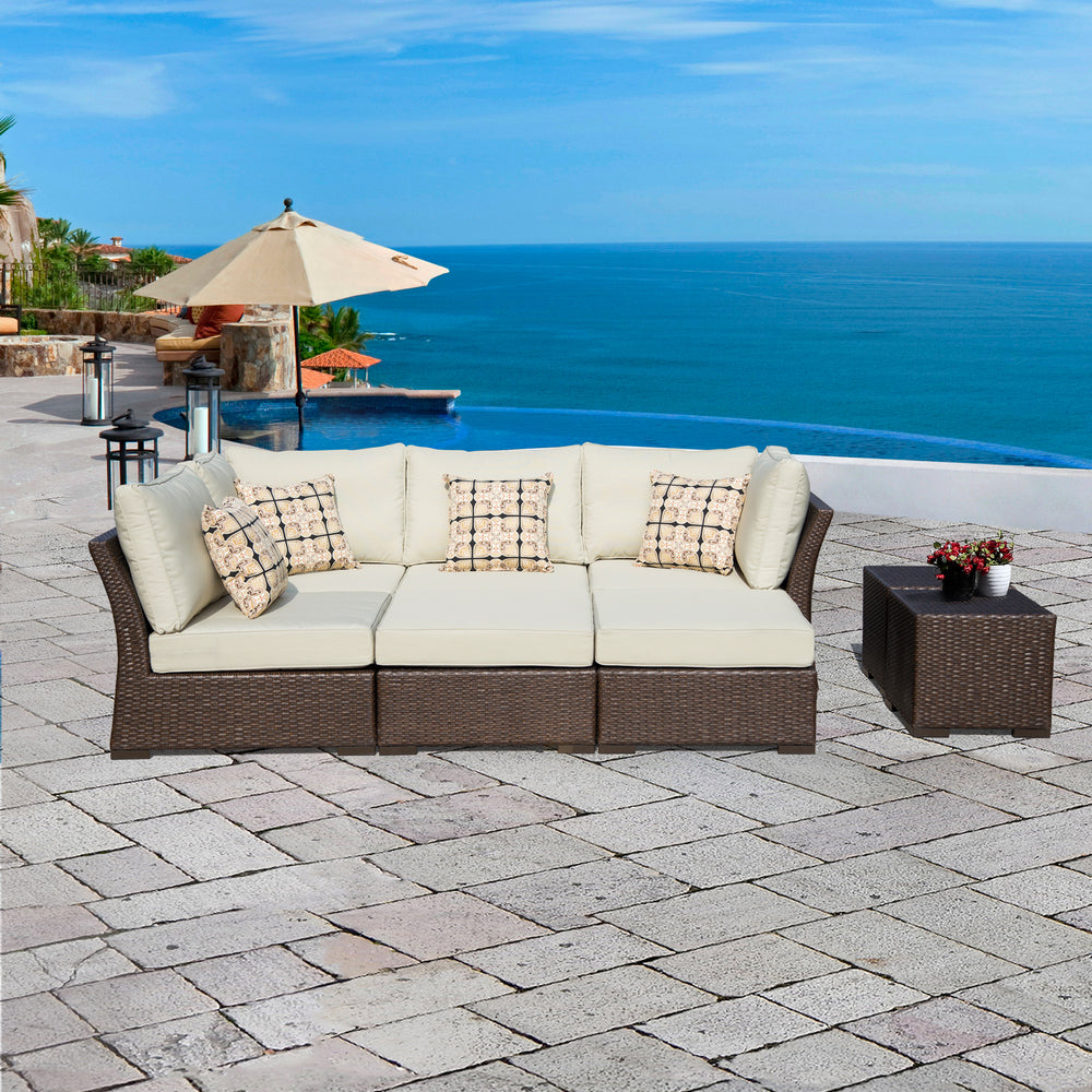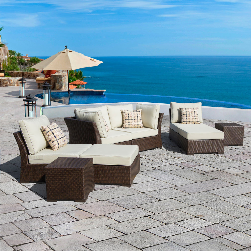 Alliant originalité au style classique, l'ensemble extérieur modulaire 8pc OREANNE de Sirio crée une harmonie parfaite de bon goût et de confort. Le design permet plusieurs possibilités d'agencement pendant que les dossiers courbés et le style traditionnel ajoute de l'élégance à votre espace extérieur. Les pièces sont fabriquées d’une structure stable en aluminium recouverte d’une résine synthétique très robuste. Les coussins sont confectionnés dune poly-fibre écologique recouverte d’un tissu en polyester résistant aux intempéries. L'ensemble modulaire 8pc OREANNE de Sirio s'adaptera à vos besoins changeants, raffinera votre décor extérieur et privilégiera le partage et le plaisir!