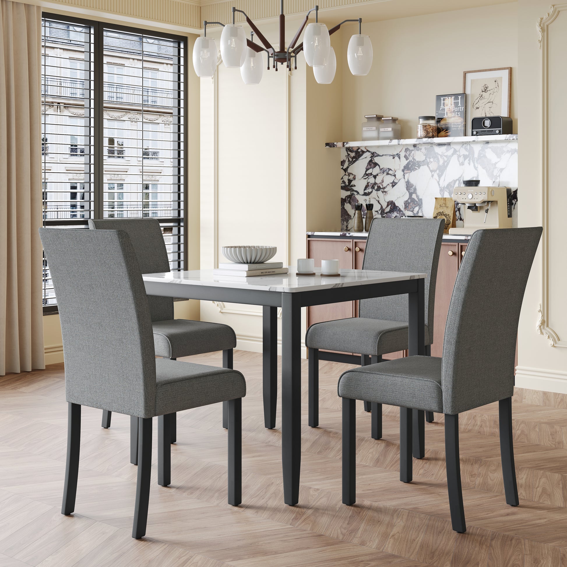 - Comprend 4 chaises de salle à manger et 1 table de salle à manger